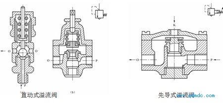 溢流阀也称安全阀,有直动式和先导式两种结构。
