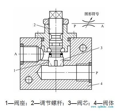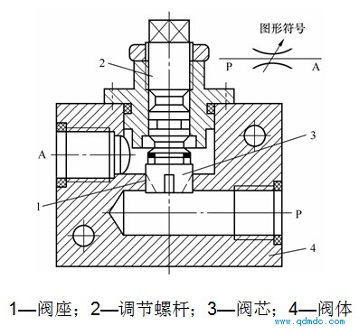 图6.42所示的是节流阀的结构,它由阀体、阀座、阀芯和调节螺杆组成。