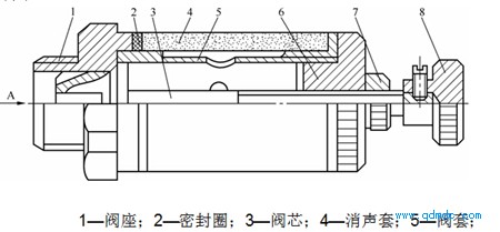 排气节流阀的工作原理与节流阀相同,只是安装在元件的排气口处,直接拧在换向阀的排气口上,用来控制执行元件的运动速度并降低排气的噪声。